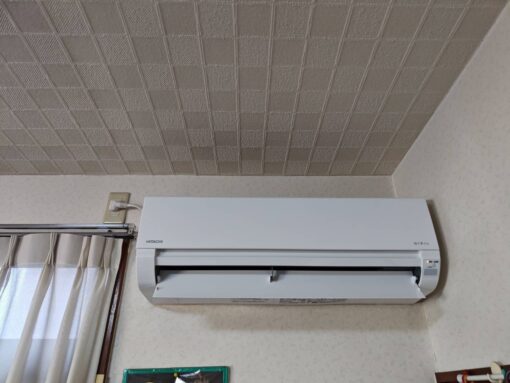 川越市でエアコンの効きを改善!古い日立製から最新の白くまくんへ交換した電気工事